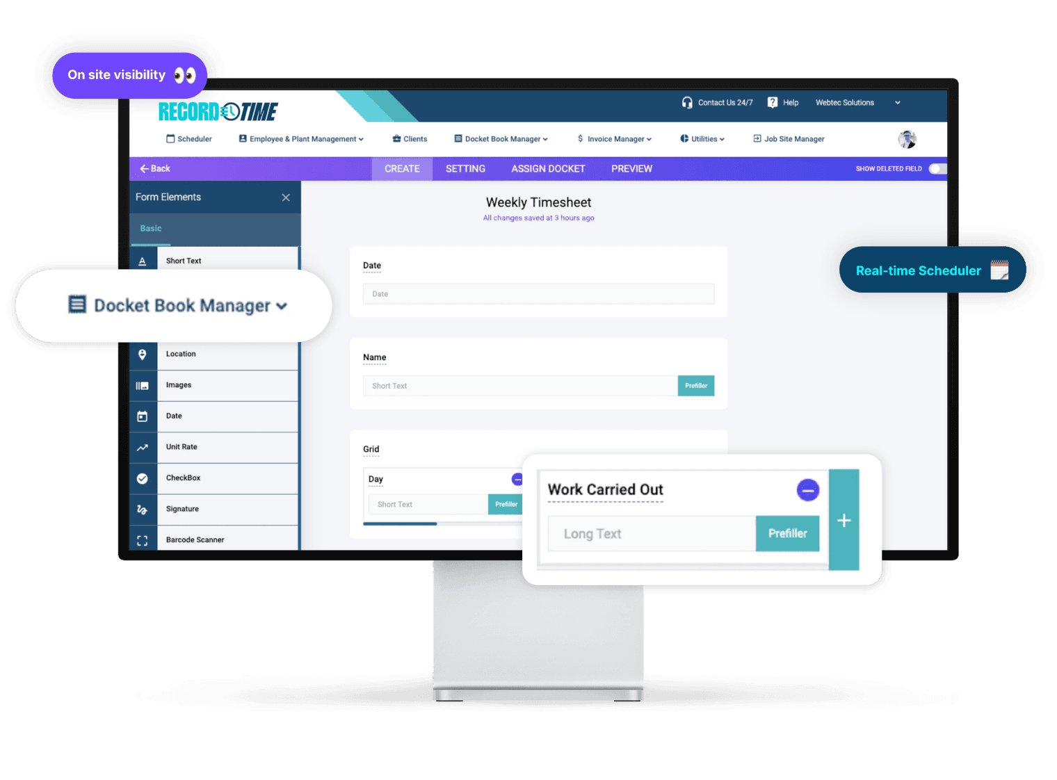 Record Time’s easy-to-use job management app gives you everything you need to run the site, minus the paperwork headache.